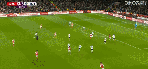 第36分钟,接梅里诺传球后,特罗萨德潇洒转身射门得手,阿森纳1-0领先!